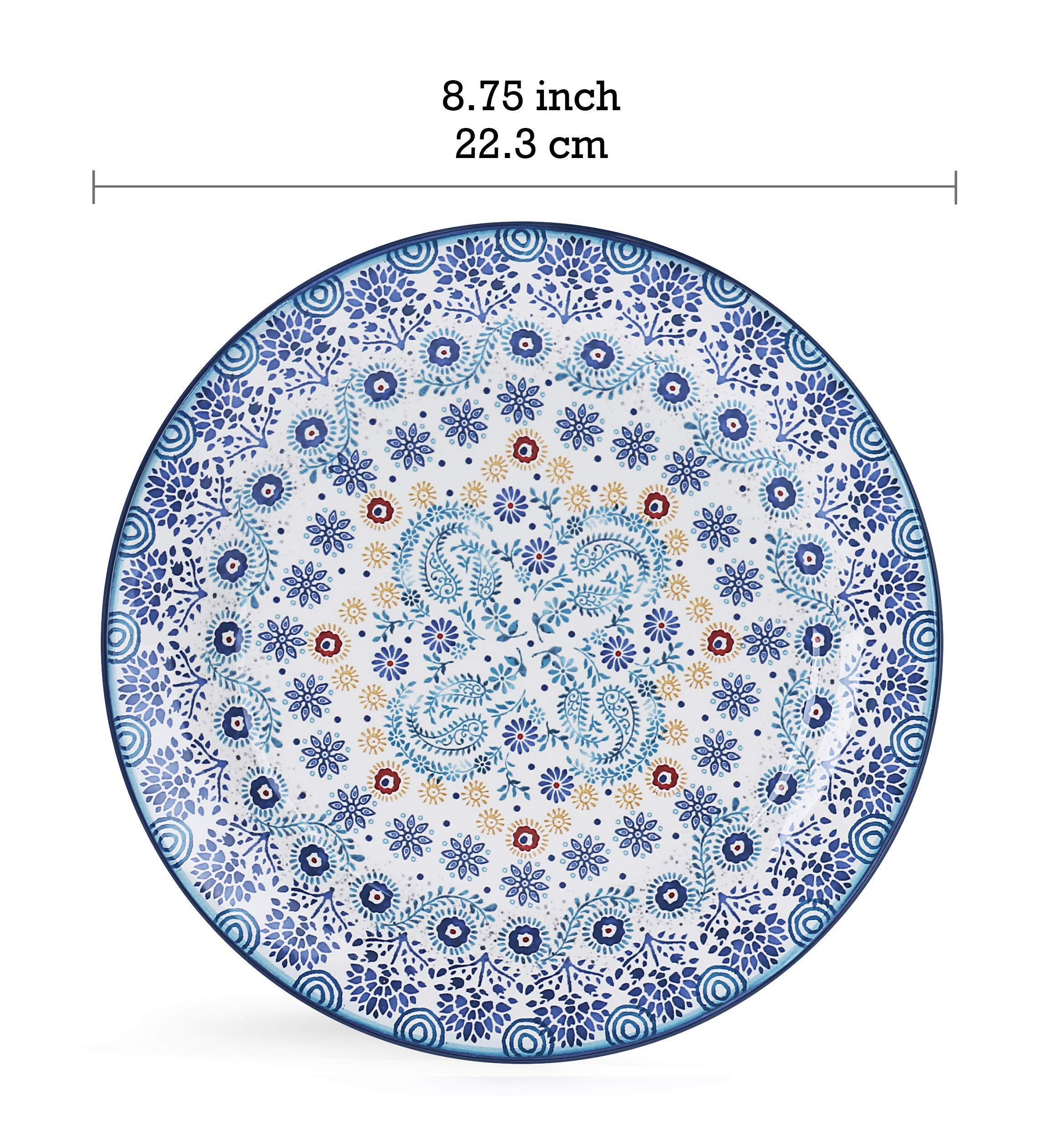 Bico Blue Talavera Ceramic 12 pcs Dinnerware Set, Service for 4, Inclusive of 11 inch Dinner Plates, 8.75 inch Salad Plates and 26oz Cereal Bowls, for Party, Microwave & Dishwasher Safe