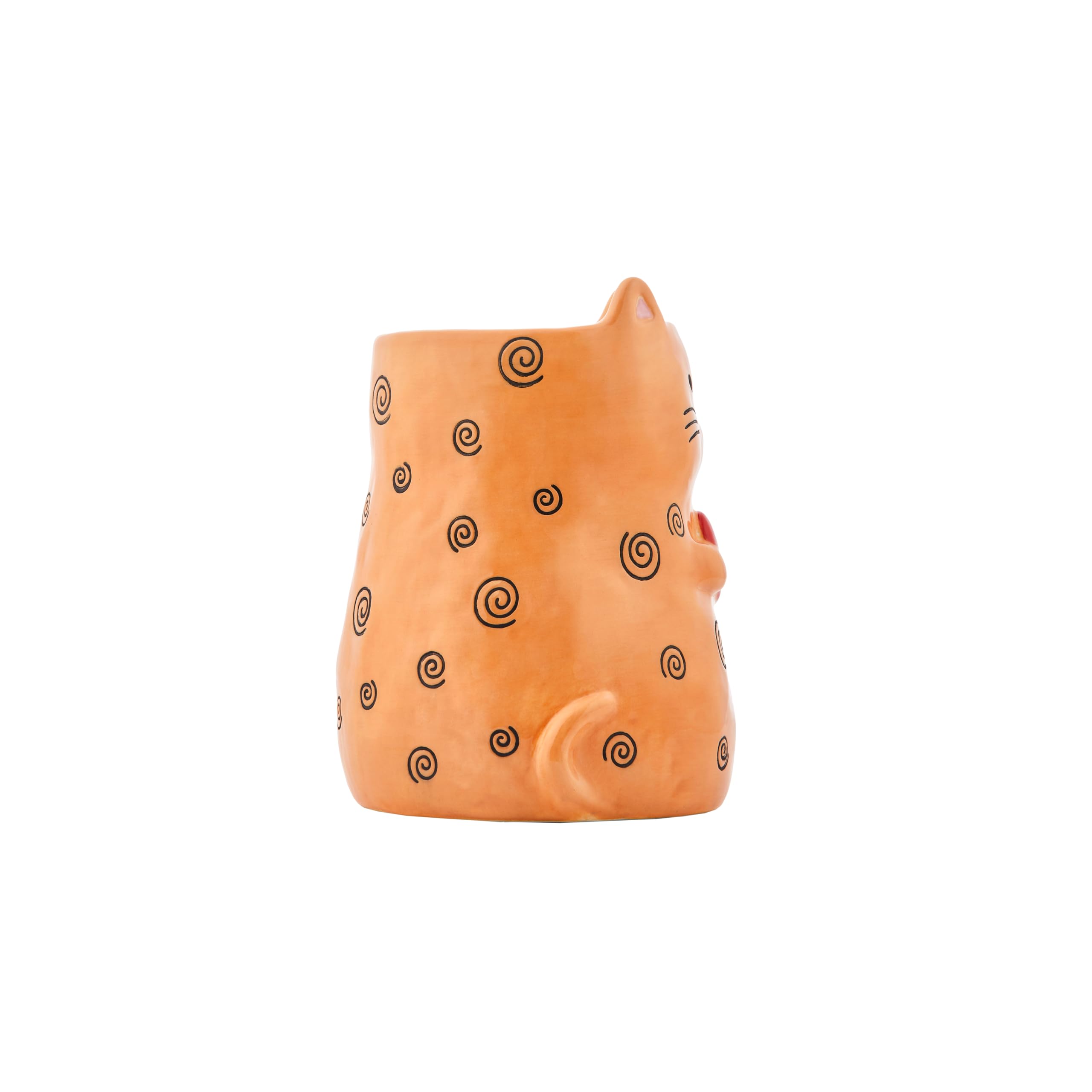 Bico Cartoon Cat Handpainted Stoneware Orange 7.8 inch Utensil Holder, Dishwasher Safe