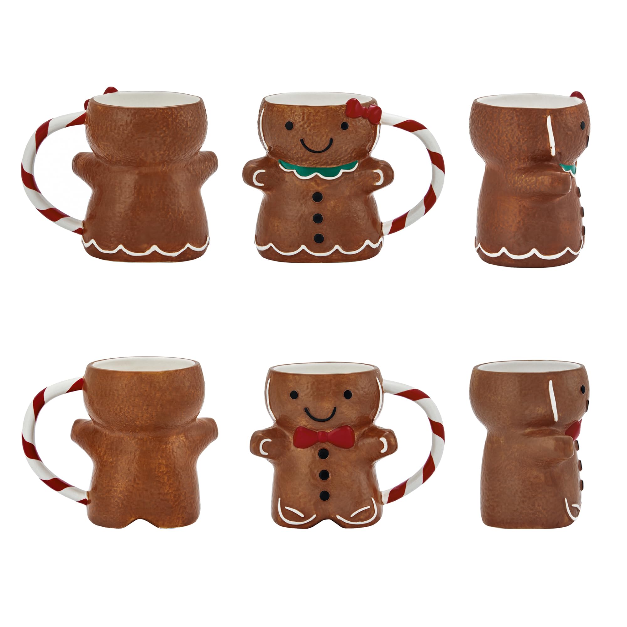 Bico Gingerbread Man Hand Painted Stoneware Mugs Set, for Coffee, Tea, Hot Chocolate, Water, Microwave & Dishwasher Safe