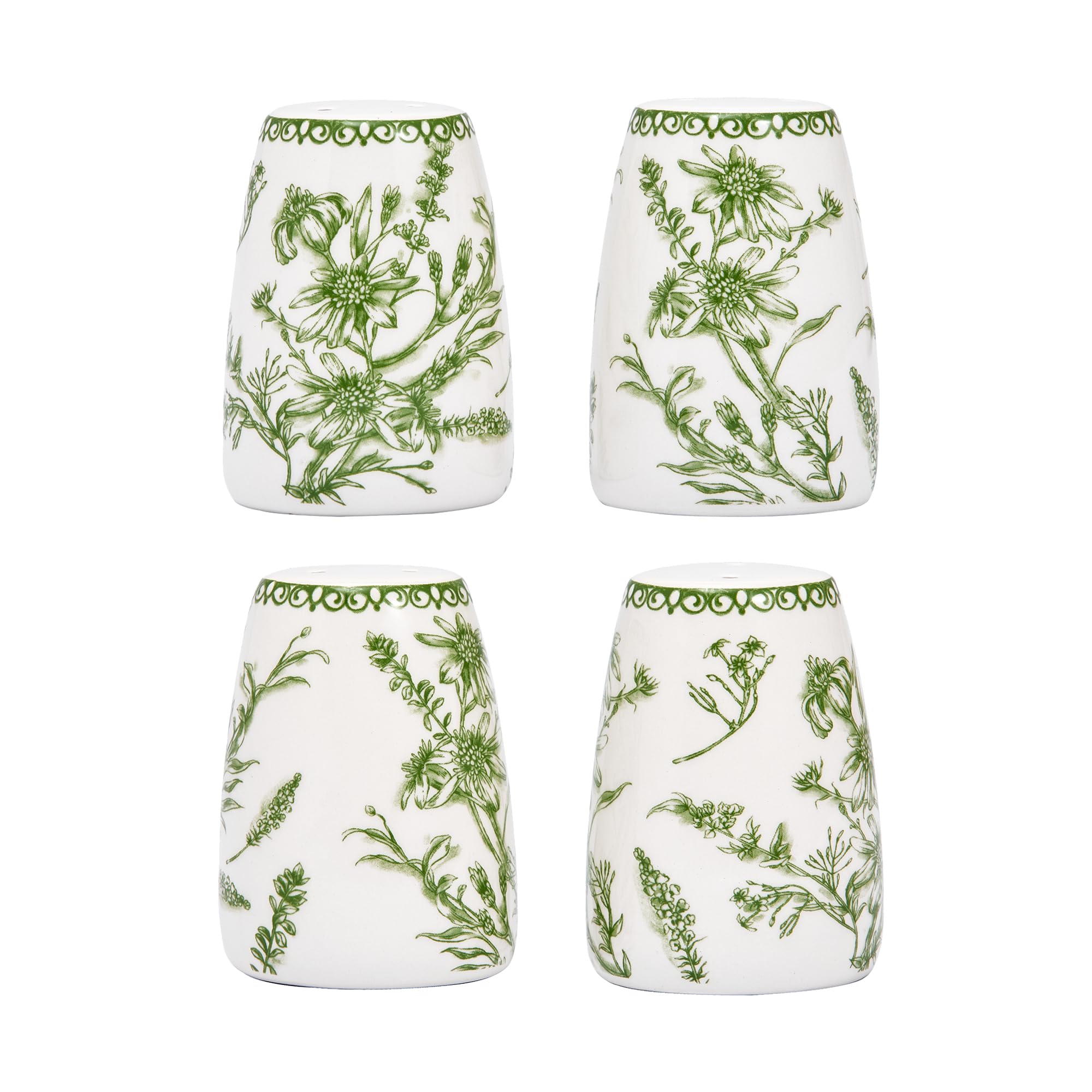 Bico Green Garden Toile De Jouy Ceramic Salt & Pepper Shaker Set, for Kitchen or Decor, Dishwasher Safe