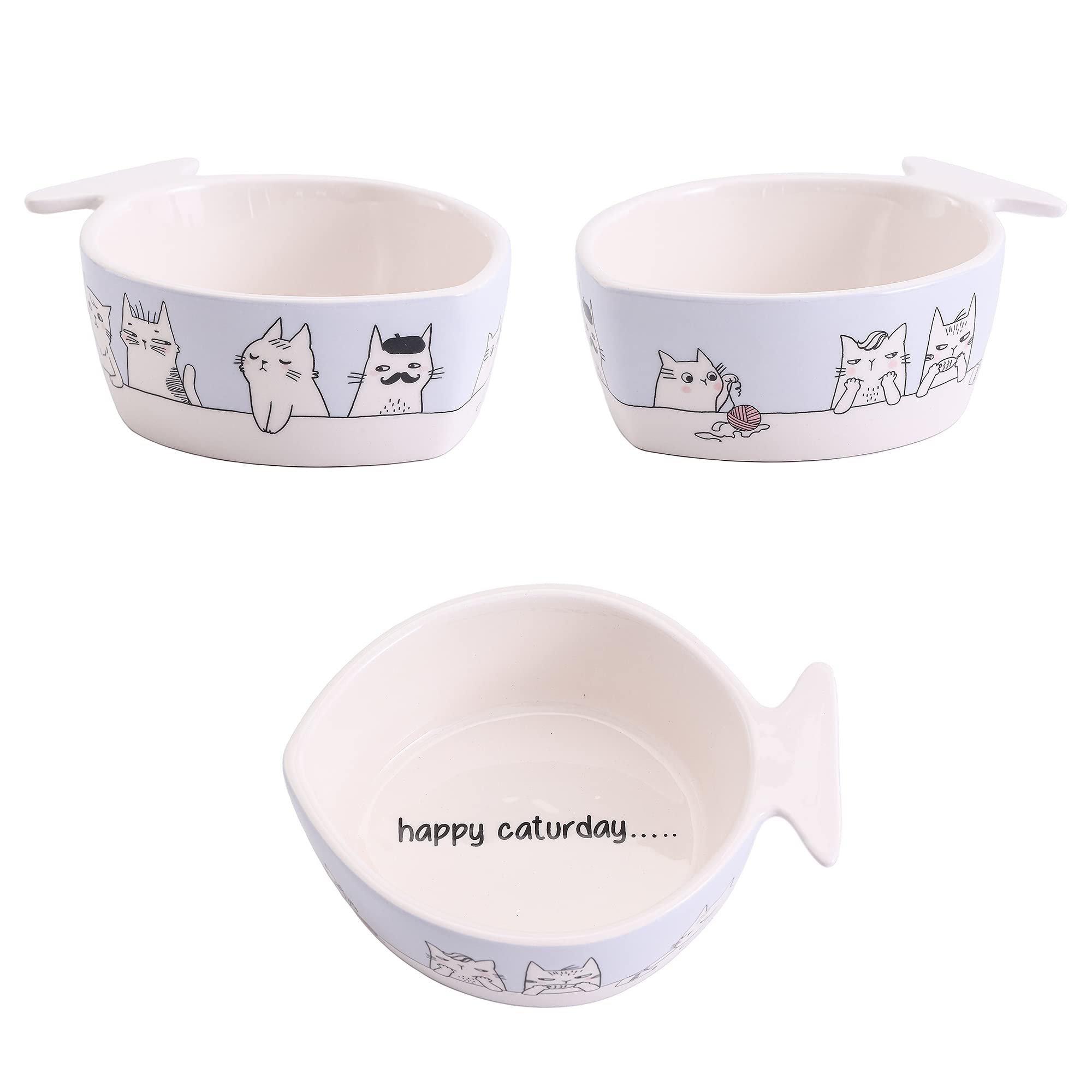 Bico Kitty Tea Party Fish Shaped Ceramic Cat Bowl, for Cat and Kitten, Dishwasher Safe