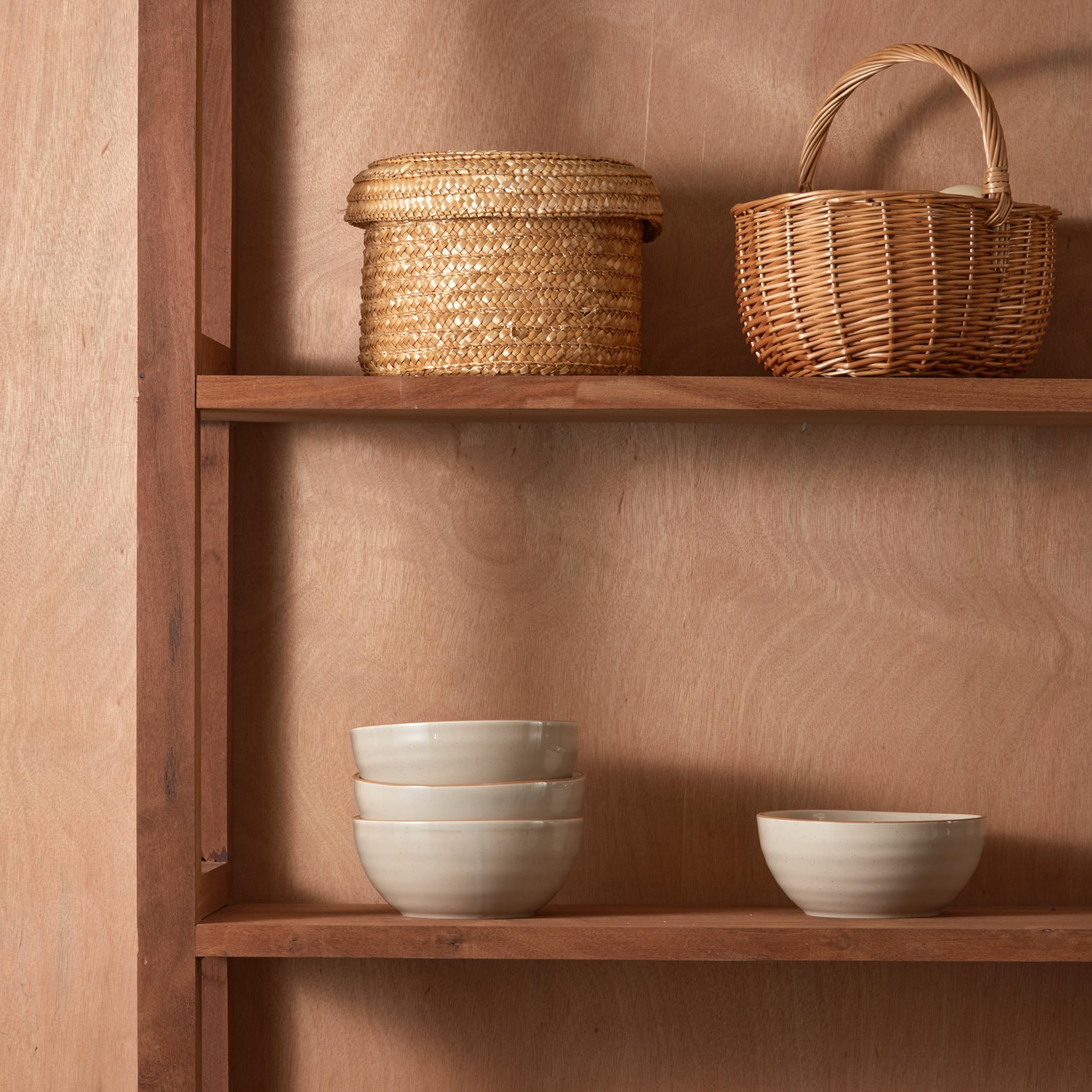 Bico Light Beige 24oz Stoneware Cereal Bowls Set, Set of 4, Microwave and Dishwasher Safe, for Cereal, Soup, Noodles