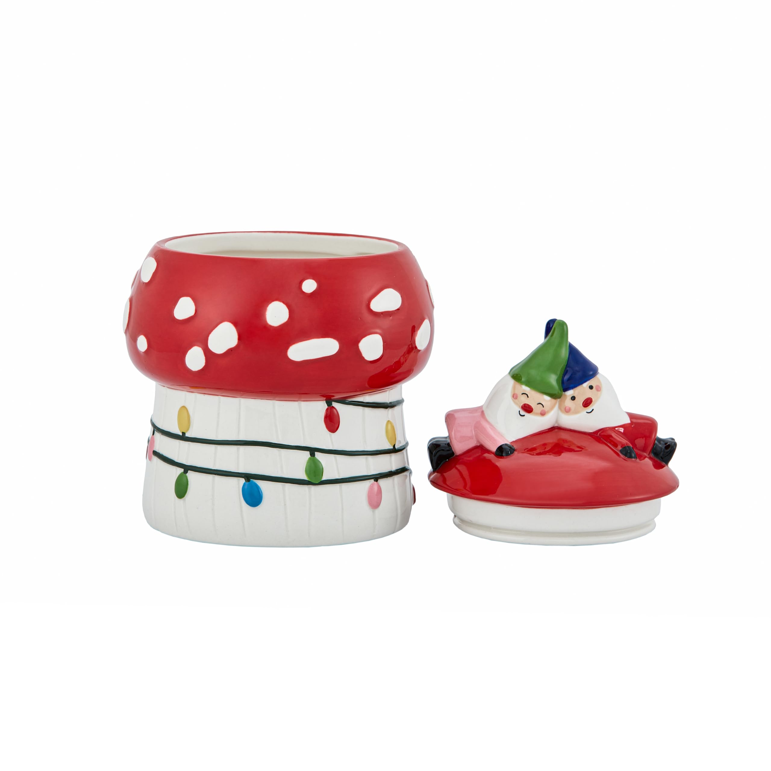 Bico Mushroom Gnome Hand Painted Stoneware Air Tight Seal Candy Jar, for storing Candy, Snacks, Cookie, Treats, Dishwasher Safe